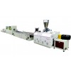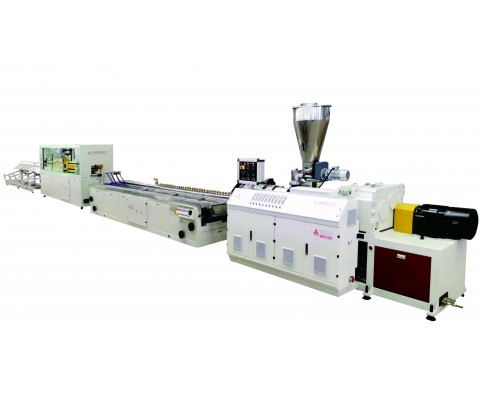 YF系列PVC异型材生产线主要用于PVC门窗型材挤出。该生产线可以根据不同型材断面及模具,选用不同规格的平行(锥形)双螺杆挤出机,并配置相应的真空定型台,牵引机、切割机、翻料平台等辅助设备。