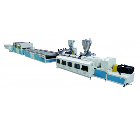 生产线采用SJZ锥形双螺杆挤出机,辅机由真空定径台、牵引机、切割机及堆料架组成。